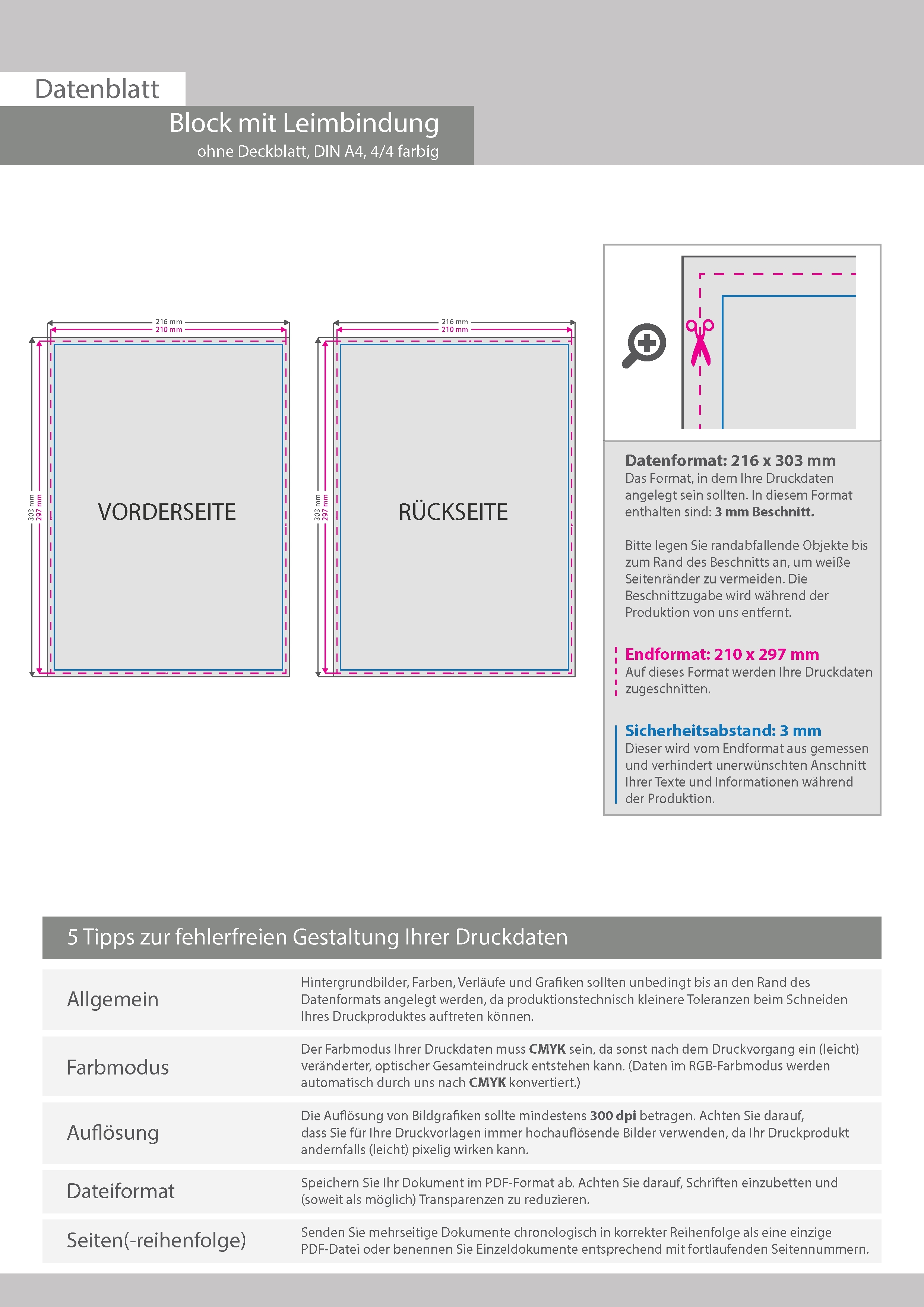 Block mit Leimbindung, DIN A4, 200 Blatt, 4/4 farbig beidseitig bedruckt