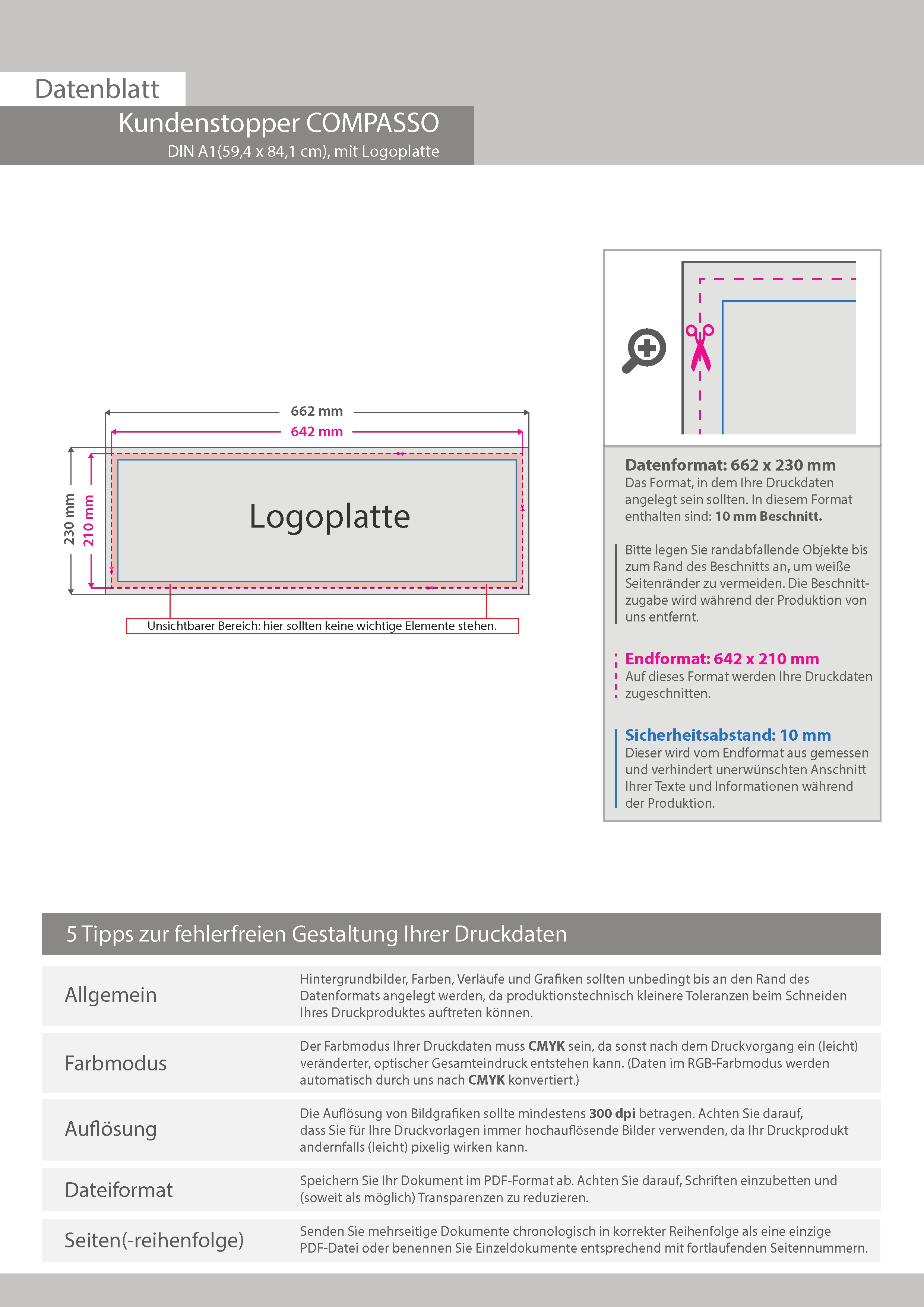 Kundenstopper COMPASSO mit Logoplatte DIN A1 (wetterfest), 32mm Rahmen, Gehrungsecken